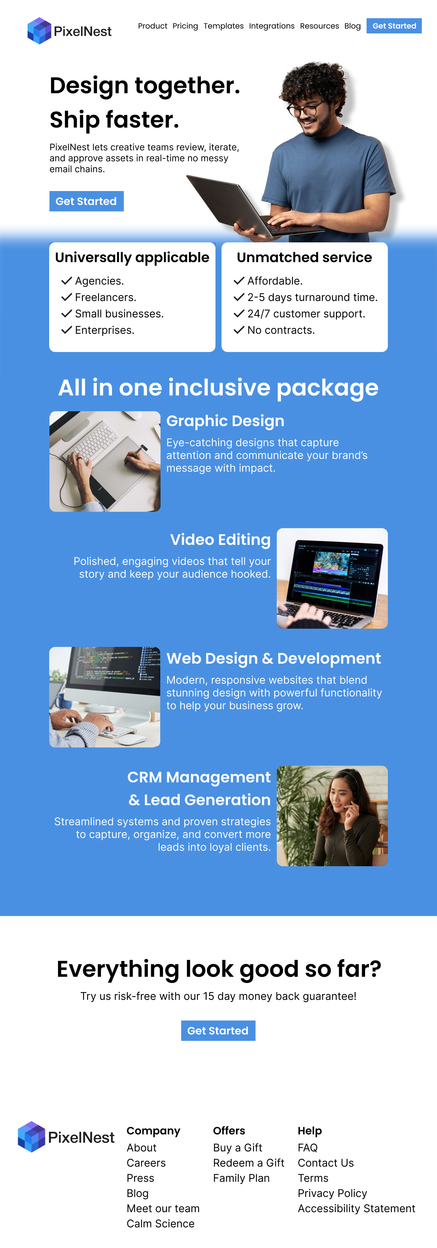 Say goodbye to unreliable freelancers and welcome a dedicated team of expert designers and funnel builders who deliver projects in days, not weeks. All of this comes at one flat and affordable rate.